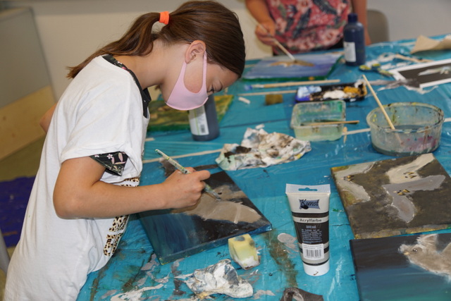 Ebenso durften die Schülerinnen und Schüler an diesem Tag unter fachkundiger Anleitung an ihren eigenen Kunstwerken arbeiten, die sie dann mit nach Hause nehmen durften.