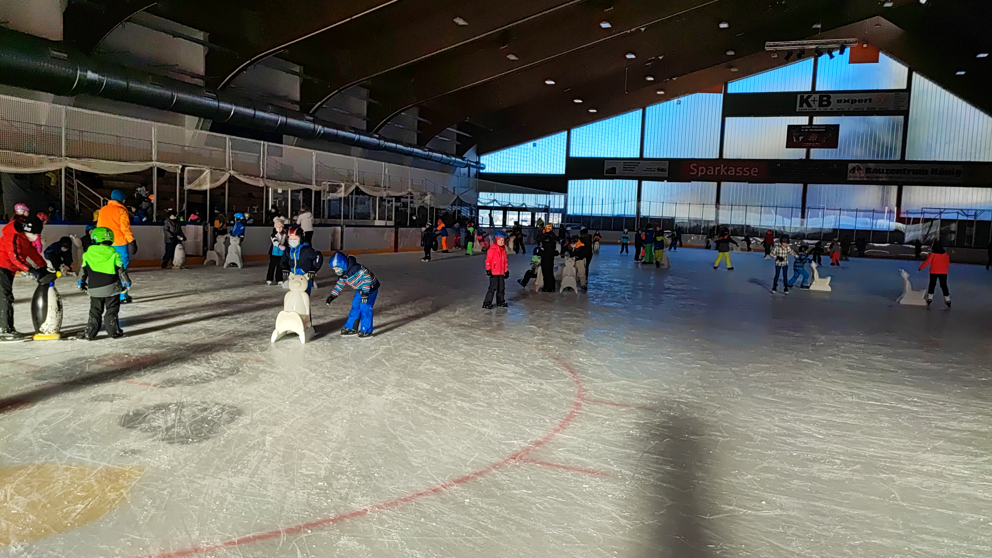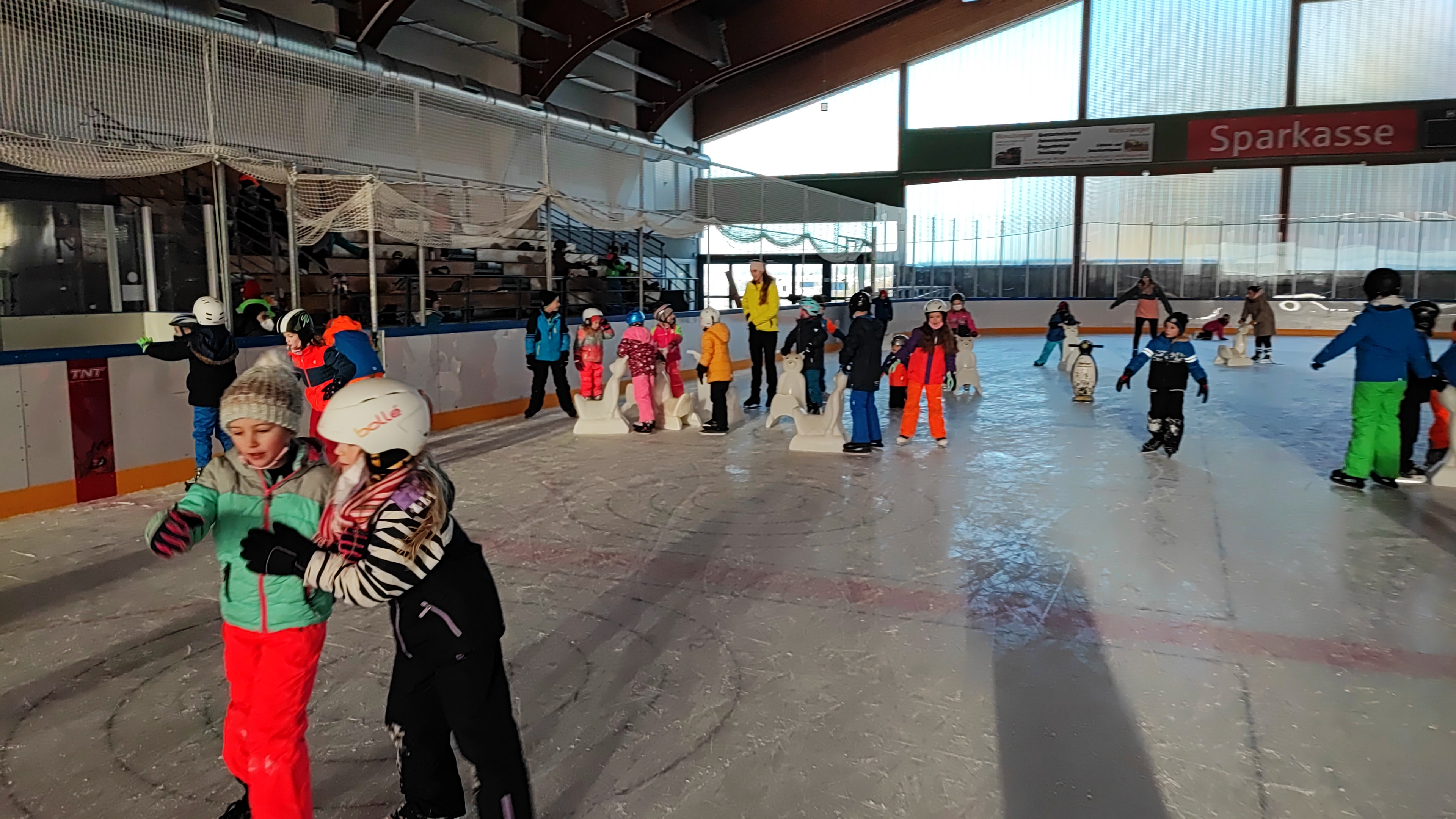Eine willkommene Abwechslung bot der Ausflug in die Eishalle nach Regen den Schülerinnen und Schülern unserer Schule. Während am Mittwoch die Grundschule das Eis unsicher machte, war am Donnerstag die Mittelschule am Start. Die begleitenden Lehrkräfte zeigten sich erstaunt darüber, wie schnell nach einigen Anlaufschwierigkeiten die Kinder den Bogen raus hatten und vergnügt über die Eisfläche flitzten. Die Mittelschüler erprobten auch das Eisstockschießen, ein Angebot, dass auch von den Mädchen gern angenommen wurde. Bei dem durchgeführten Wettkampf hatten aber zum Leidwesen der Eisschützen unter den Schülern die Lehrer die Nase vorn. Schön war auch, dass beide Tage ohne Verletzungen und Blessuren abliefen.